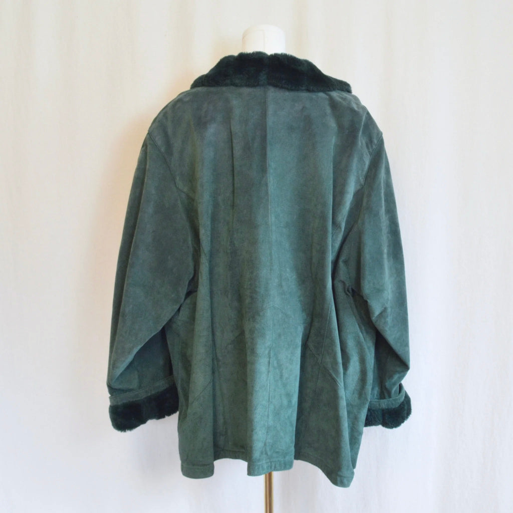 evergreen suede chore coat with sheepskin collar and cuffs