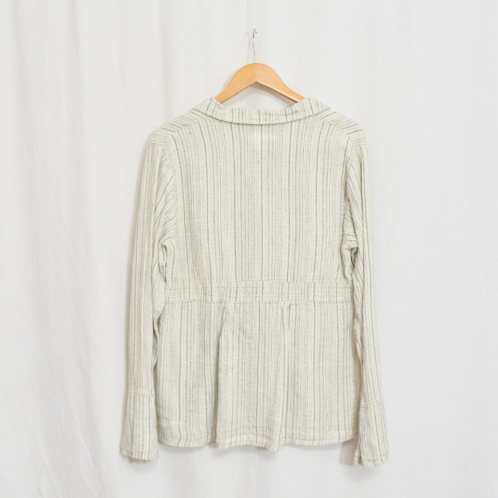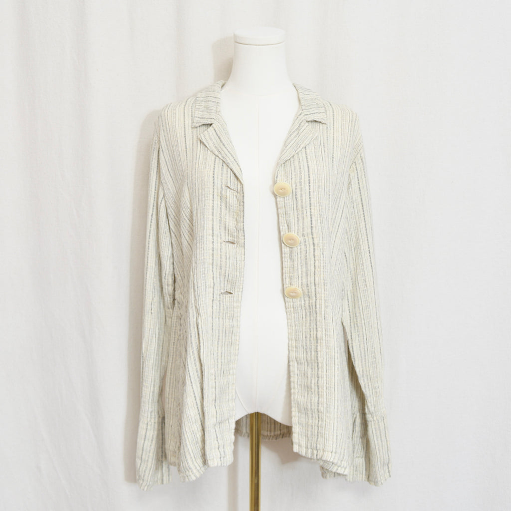 nice lightweight summer jacket with a flattering fit because of some subtle tailoring in the back - two front pockets that blend into the tailoring