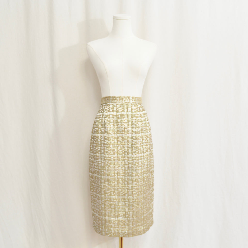 fully lined with a back zip and hook closure - no pockets - small back slit - a little bit of elastic in hidden side panels