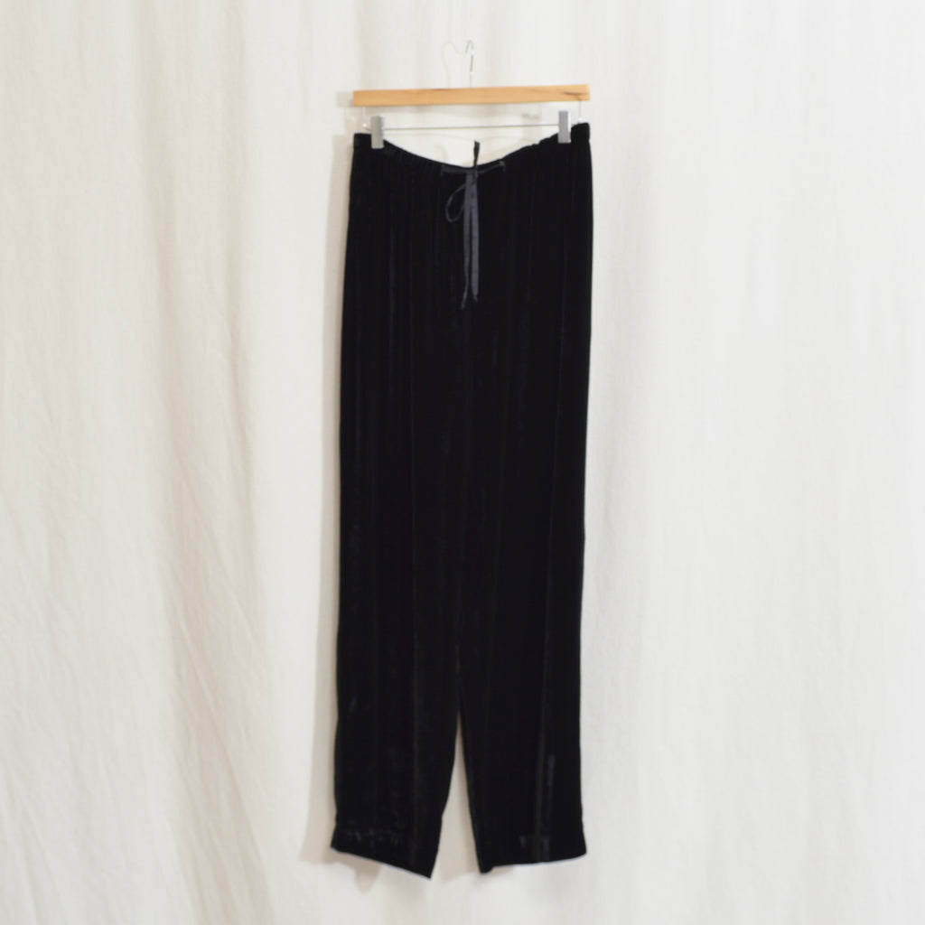 silk blend drawstring and elastic waisted velvet straight leg pants