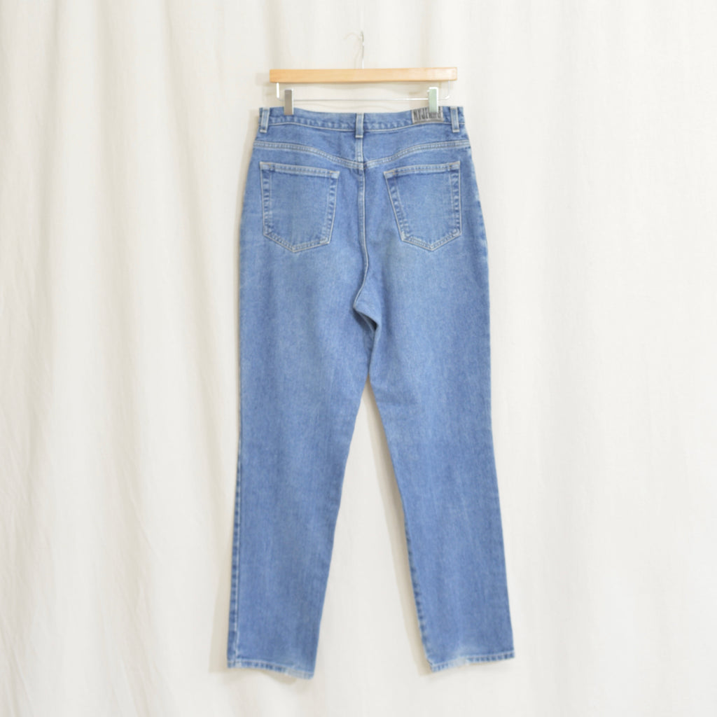 33 x 31.5 high waisted mid wash tapered ny jeans vintage denim