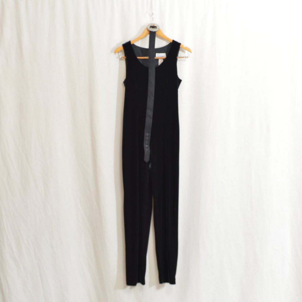 nice simple kind of boxy straight up and down design with a belt for cinching - full length legs and tank top shape - no pockets