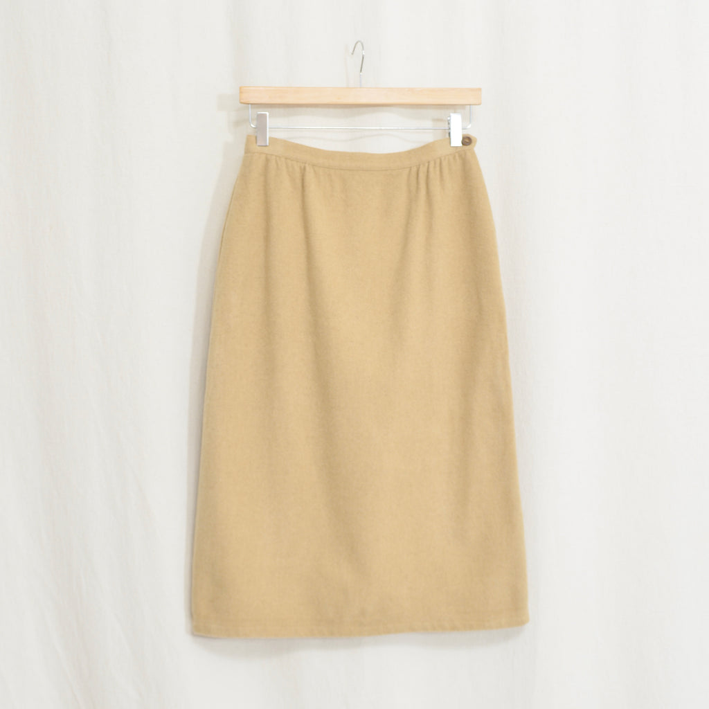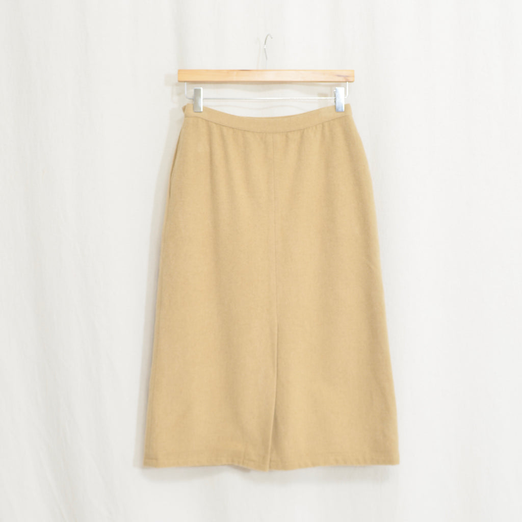 26" fully lined dark khaki wool and camel hair straight line midi skirt