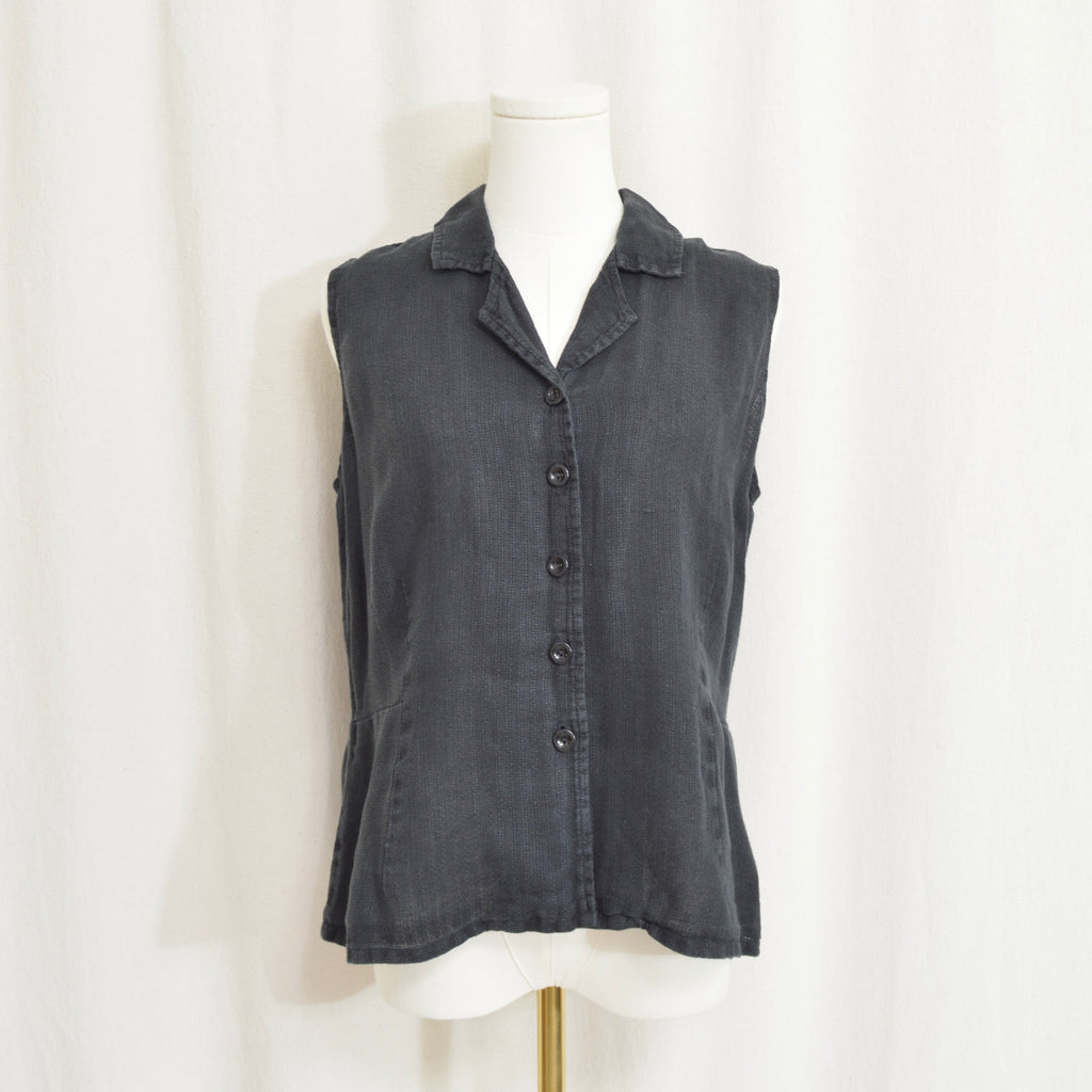 not your plain run of the mill linen flax top - this one has a new delicate texture to the fabric and a flattering slightly nipped in waist