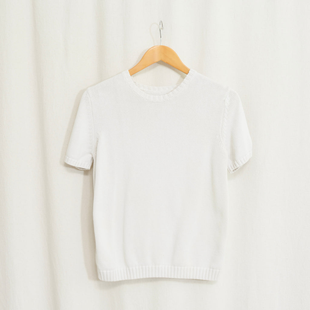 kind of a grayish/off white color - simple classic crew neck t fit in a sweater weave
