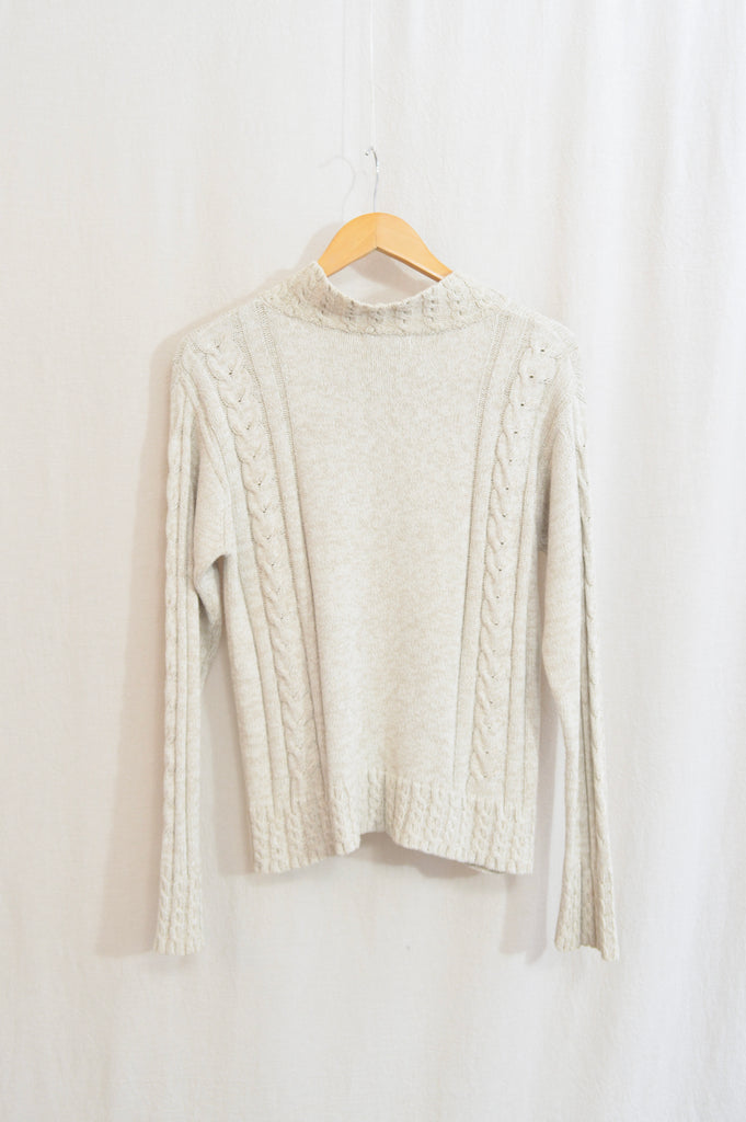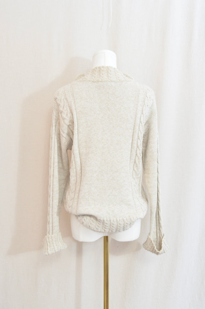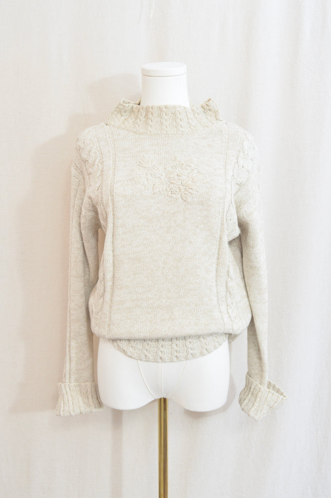 one of my faves in the shop - super soft silk knit with the weight of your favorite sweater - sweet floral embroidery on the front with cable knit accents