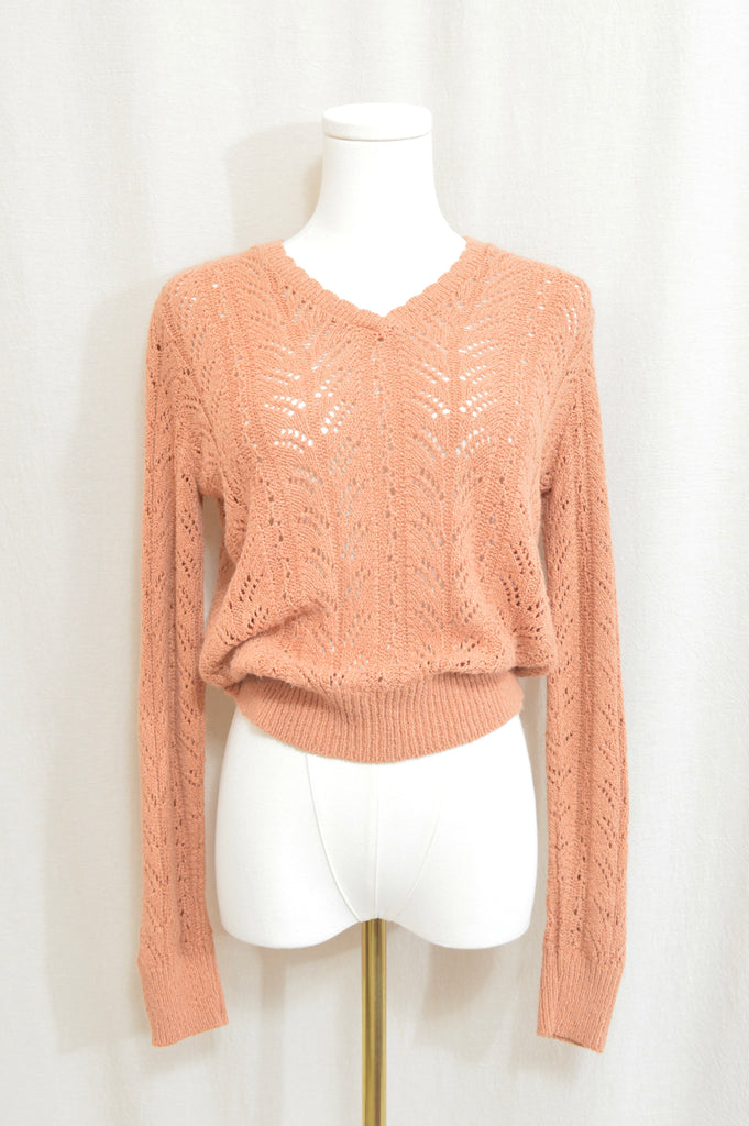“pure gould” open knit dusty rose v-neck cropped sweater